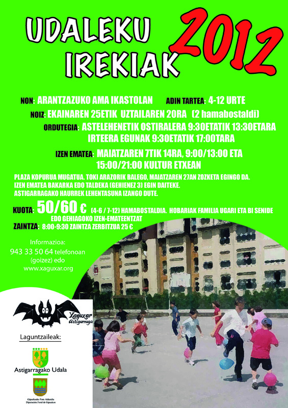 Informazioa: 943 33 50 64 telefonoan (goizez) edo info@xaguxar.org helbidean.