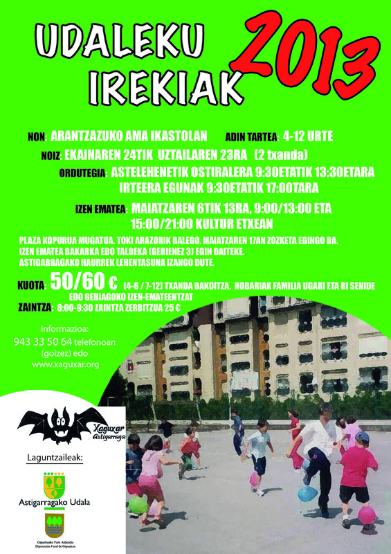Informazioa: 943 33 50 64 telefonoan (goizez) edo info@xaguxar.org helbidean.